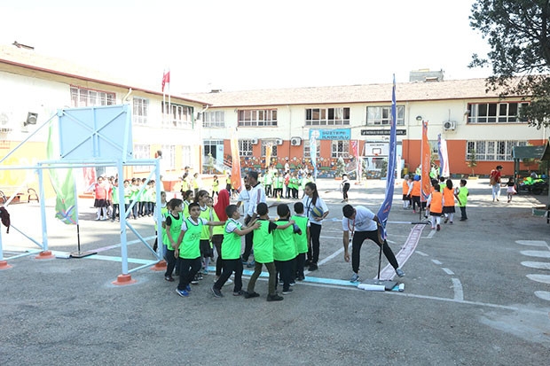 Sosyal belediyecilik anlayışıyla çeşitli etkinlikler düzenleyen büyükşehir, okulları sportif faaliyetlerle şenlendirdi. İki yıl önce uygulamaya alınan proje, 70 okulda 68 bin 510 öğrenciye, 2018’de 104 okul 95 bin 474 öğrenciye, 2019 ilk döneminde 17 okul 17 bin 736 öğrenciye ulaşmayı başardı. Proje çalışmaları kapsamında çalışmalarını sürdüren Büyükşehir Belediyesi, Düztepe İlkokulu’nda etkinlik düzenlendi. Öğrenciler okulun bahçesinde oyun oynadı, spor aktivitelerine katıldı.