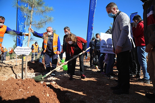 Daha temiz ve yeşil bir şehir için çalışmalarını sürdüren Gaziantep Büyükşehir Belediyesi, “Yeşil Şehirler Huzurlu Nesiller” sloganıyla başlattığı şehir merkezinde 14 alan ve okullarda ağaçlandırma çalışmalarının üçüncü durağı Şehitkamil İlçesi’nde bulunan Fıstıklık Mahallesi oldu. 50 bin metrekarelik alandaki ağaçlandırma çalışması, Büyükşehir Belediyesi ile imzaladıkları işbirliği protokolü kapsamında GABDER tarafından yapıldı. Ağaçlandırma programına Gaziantep Büyükşehir Belediye Başkanı Fatma Şahin, Gaziantep Valisi Davut Gül, Şehitkamil Kaymakamı Ömer Kalaylı, Gaziantep İl Milli Eğitim Müdürü Yasin Tepe, Gaziantep Kent Konseyi Başkanı Dr. Samet Bayrak, AK Parti Şehitkamil İlçe Başkanı Mehmet Yılmaz, GABDER Başkanı Ali Özcan Akcan ve TMMOB Peyzaj Mimarları Odası Gaziantep İl Temsilcisi Sait Ersin Özbadem katıldı. Ali Topcuoğlu Mesleki ve Teknik Anadolu Lisesi öğrencilerinin de hazır bulunduğu programda ağaçlar toprakla buluşturuldu.