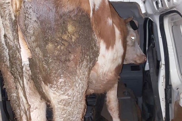 İneği aracın bagajına sığdırdılar