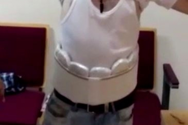 KAHRAMANMARAŞ'ta, Şehirlerarası Otobüs Terminali'nde görüntüsü ve tavırlarıyla 'canlı bomba' paniği yaratan 27 yaşındaki Aytek A.'nın vücuduna sarılı paketlerde 2 kilo esrar ve 4 gram esrar ele geçirildi.