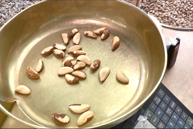 Görüntüsü ile fıstığı, tadı ile bademi andıran Brezilya cevizinin fiyatı dudak uçuklatıyor. Zayıflamak isteyenlerin tercih ettiği Brezilya cevizi, kilosu 350 TL'den satılıyor.