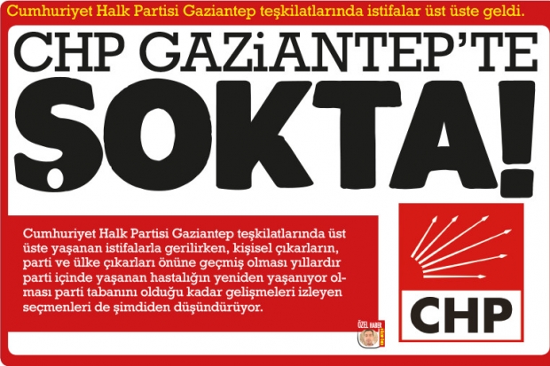 Cumhuriyet Halk Partisi Gaziantep teşkilatlarında üst üste yaşanan istifalarla gerilirken, kişisel çıkarların, parti ve ülke çıkarları önüne geçmiş olması yıllardır parti içinde yaşanan hastalığın yeniden yaşanıyor olması parti tabanını olduğu kadar gelişmeleri izleyen seçmenleri de şimdiden düşündürüyor.