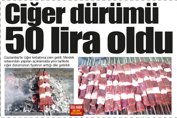 Gaziantep'te ciğer kebabına zam geldi. Meslek odasından yapılan açıklamada yeni tarifede ciğer dürümünün fiyatının arttığı dile getirildi.
