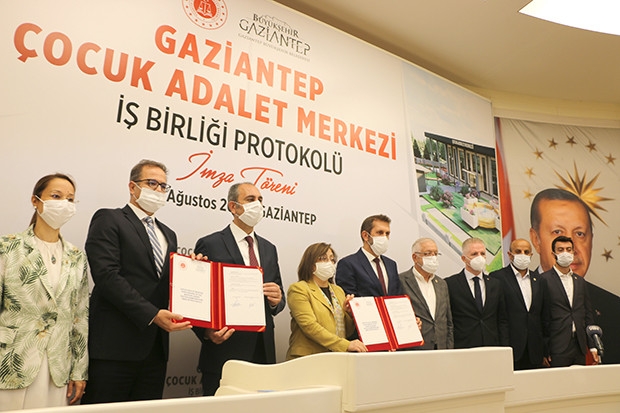Çocuk Adalet Merkezi Protokol İmza Töreni Adalet Bakanı Abdülhamit Gül, Gaziantep Büyükşehir Belediye Başkanı Fatma Şahin, Gaziantep Valisi Davut Gül, Gaziantep Cumhuriyet Başsavcısı Önder Kemal Sekücü, AK Parti Gaziantep milletvekillerinden Ahmet Uzer, Derya Bakbak, Mehmet Sait Kirazoğlu ve Müslüm Yüksel katıldı. Bakanı Abdulhamit Gül, çocukların suça sürüklenmesinin önlenmesi için çalışmalar yaptıklarını anlattı. Bakan Gül, “Çok önemli bir işbirliği için imza atıyoruz. Birçok çalışma ve faaliyet yapıyoruz ama çocuğa temas eden her faaliyet, her program bizi heyecanlandırıyor. Geleceğimiz için bir aradayız. Çocuk Adalet Merkezi yapılanmasının ilk adımını burada başlatmış olacağız. Çocukların hak ve özgürlükleri vazgeçilmez temel haklardandır ve devlete anayasada da yüklenen vazifelerden biri, devletin her türlü istismara karşı yine çocuklara yönelik koruyucu tedbirleri alması da ayrıca düzenlenmiştir. Sosyal devlet, hukuk devleti olmanın gereği budur. Çocuklarımız çünkü ruhsal ve fiziki olarak yetişkin insanlardan daha fazla etkilenmektedir. Bu sebeple daha özel ihtimam gösterilmesi gereken bir konudur.”