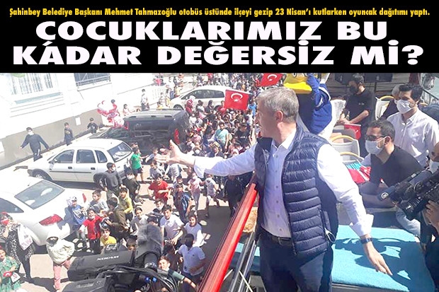 Gaziantep’te sokağa çıkma kısıtlaması bulunmasına rağmen çocukların otobüsün peşinden koşturduğu, Şahinbey Belediye Başkanı Mehmet Tahmazoğlu’nun otobüsten fırlattığı oyuncakları almaya çalışırlarken izdiham yaşandığı görüldü. Hem sokağa çıkma kısıtlamasına hem de diğer salgın kurallarına uyulmadı. Çocukların neredeyse birbirini ezdiği etkinliğin ardından sosyal medyada eleştiri bombardımanı yaşandı.