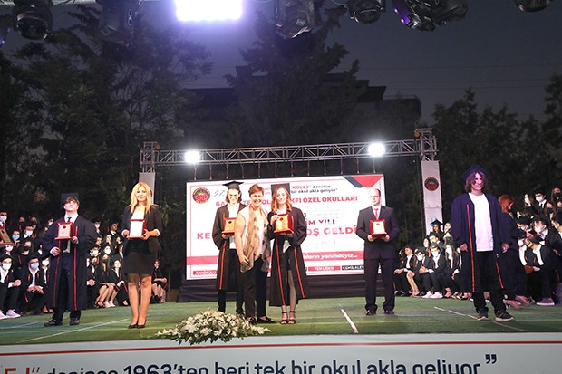 Gaziantep Kolej Vakfı Özel Okulları’nın 57’inci yıl mezunları GKV eğitim kampüsünde düzenlenen görkemli bir mezuniyet töreni ile keplerini atarak mezun oldu. Yarının umutları, Türkiye’nin geleceği olan gençlere sahip çıkarak onları yarınlara en iyi şekilde hazırlamayı kutsal bir görev kabul eden Gaziantep Kolej Vakfı Özel Okullarının 57’inci yıl mezunları görkemli mezuniyet törenlerinin sonuncusunda Gaziantep Kolej Vakfı Özel Liselerinden mezun olan öğrenciler de coşkulu bir şekilde kep attı. 2020-2021 eğitim öğretim yılında Gaziantep Kolej Vakfı Özel Liselerinden mezun olan 147 öğrenci mezun oldu. GKV Mütevelli-Yönetim Kurulu Başkanı Nüket Ersoy, Celal Ersoy ve GKV Mütevelli-Yönetim Kurulu üyeleri Seyhan Fesli, Osman Kıratlı ve Aysel Tokatlı’nın yanı sıra çok sayıda davetli ve öğrenci velisi öğrencileri yalnız bırakmadı. Bayrak ve flamanın takdimi ile saygı duruşu ve İstiklal Marşı ile başlayan kep törenine GKV Özel Liseleri Müdürü Engin Biba günün anlam ve önemini belirten anlamlı bir konuşma yaparken GKV Özel Liselerinin özveriyle çalışan idarecileri ve akademik kadrosu teşekkür belgelerini GKV Mütevelli-Yönetim Kurulu Üyesi Seyhan Fesli verdi. Gecede aynı zamanda GKV Özel Liseleri Genç Kızlar Voleybol ve Genç Erkekler Basketbol Takımı’nın şampiyon oyuncuları ve antrenörleri, GKV Özel Liseleri idarecileri, GKV Özel Fen, Anadolu ve Cemil Alevli Koleji (IB) okul birincileri, ikincileri ve üçüncülerine plaket ve çiçekleri GKV Mütevelli-Yönetim Kurulu Üyeleri Seyhan Fesli, Osman Kıratlı ve Aysel Tokatlı tarafından takdim edildi. Yapılan konuşmaların ve etkinliklerin ardından gecenin finali 2020-2021 eğitim öğretim yılını bitirerek GKV Özel Liselerinden mezun olan öğrencilerin kep atmasıyla gerçekleştirildi.