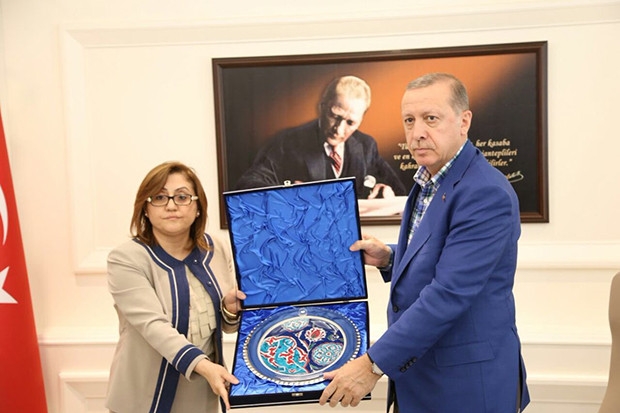 Cumhurbaşkanı Recep Tayyip Erdoğan, Gaziantep Büyükşehir Belediye Başkanı Fatma Şahin'i makamında ziyaret etti.