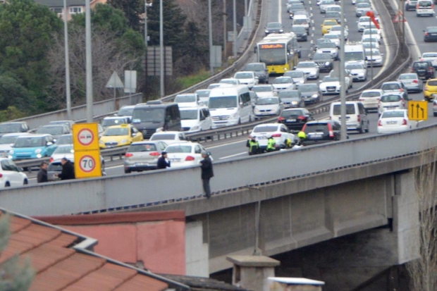 Boğaziçi Köprüsü Ortaköy Viyadüğü üzerinde bariyerlerin arkasına geçerek intihar etmek isteyen yaşlı bir vatandaş olay yerine gelen müzakereci polis tarafından Cumhurbaşkanı Recep Tayyip Erdoğan’ın geçişinden 5 dakika önce ikna edildi.
