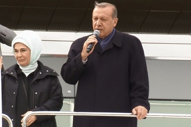 Erdoğan, referandum sürecinde 7 düvele karşı mücadele verildiğinin altını çizerek, “Batı’dan haçlı zihniyeti bize saldırdı, içeride de uşakları bize saldırdı. Fakat yılmadık, usanmadık, milletçe dimdik durduk. Çünkü biz sadece mevlamızın huzurunda secdede eğiliriz. Kardeşlerim önümüzde atacağımız çok çok önemli adımlar var. Bu bir ülkenin maddi noktadaki alt yapı, üst yapı yatırımlarına yönelik, bir de insanımıza yönelik. İnsanımıza yönelik yatırımlarda özellikle de eğitim işin başını çekiyor” şeklinde konuştu.