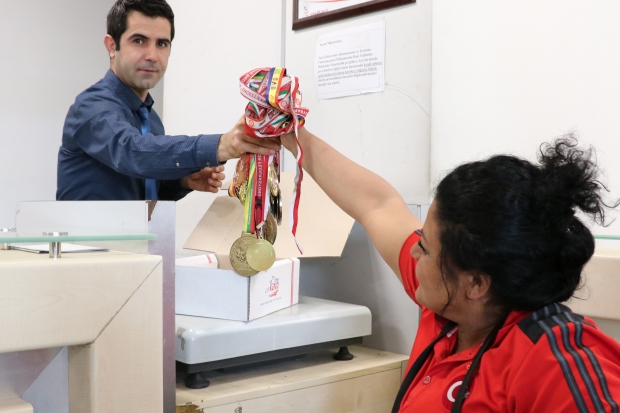 Yılmaz, özenle paketlediği madalyaların Cumhurbaşkanı Erdoğan'a ulaştırılmak üzere kargoyla Huber Köşkü'ne gönderdi.