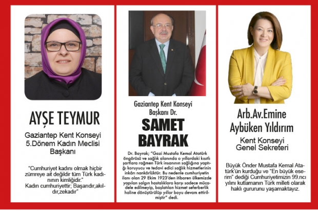 Gaziantep Kent Konseyi Başkanı Dr. Samet Bayrak, 29 Ekim Cumhuriyet Bayramının 99. Yıl Dönümü dolayısıyla önemli açıklamalarda bulundu. Dr. Bayrak; “Gazi Mustafa Kemal Atatürk öngörüsü ve sağlık alanında o yıllardaki kısıtlı şartlara rağmen Türk insanının sağlığına yaptığı koruyucu ve tedavi edici sağlık hizmetlerinin inkârı nankörlüktür. Bu nedenle cumhuriyetin ilanı olan 29 Ekim 1923’den itibaren ülkemizde yapılan salgın hastalıklara karşı sadece mücadele edilmeyip, başlatılan hizmet seferberlik haline dönüştürülüp yıllar boyu devam ettirilmiştir” dedi.