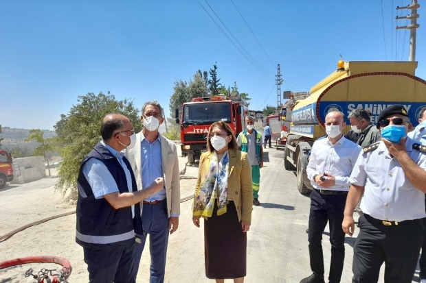 Bölgede bulunan itfaiye ekipleri yangını kontrol altına alma çalışmalarını sürdürürken Gaziantep Büyükşehir Belediye Başkanı Fatma Şahin, İtfaiye Daire Başkanı Cafer yılmaz ile birlikte yanan deponun bulunduğu bölgeye geldi. Fatma Şahin, yürütülen söndürme çalışmalarını yerinde inceleyerek, bilgi aldı. Şahin, tüm imkanların seferber edilerek yangına müdahale edildiğini kaydetti.
