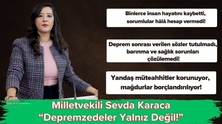 “6 Şubat depremi bu ülkede halen hesaplaşılamayan çok büyük suçların sonucunda bir katliama dönüştü. Depremin etkilediği 11 kentte acılar hala taze. Üstelik deprem bölgesinde yaşanan hak ihlalleri yeni acılar ve büyük sorunlar da yaratıyor. Her ne kadar iktidar bu bölgede barınma, alt yapı, eğitim, sağlık gibi çok temel sorunları çözdüğü, bölgeyi ihya ettiği reklamı yapsa da gerçek bambaşka.
