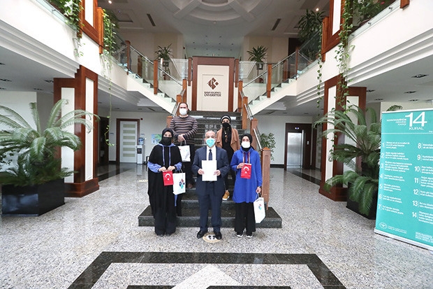 HKÜ’de İstiklal Marşı'nın kabulünün 100. yılına özel olarak, Ankara Sosyal Bilimler Üniversitesi Rektörü ve Türkiye Yazarlar Birliği Genel Başkanı Prof. Dr. Musa Kazım Arıcan'ın katılımıyla düzenlenen çevrimiçi konferansı sonuna kadar izleyen ve konferans sonunda söz alarak görüşlerini sunan öğrenciler, Rektör Prof. Dr. Türkay Dereli tarafından çeşitli hediyelerle ödüllendirildi. Dereli, İstiklal Marşı’na sahip çıkan gençlerimizin Türkiye’nin geleceğinin teminatı olduğunu söyledi.