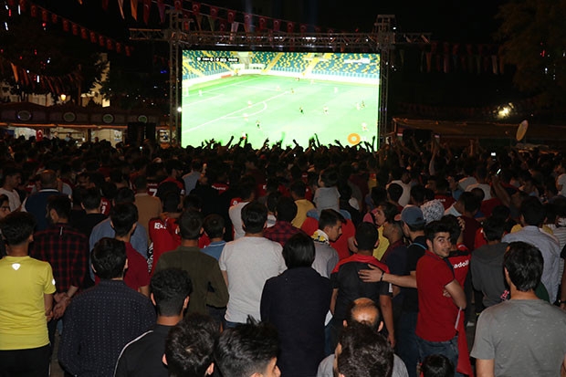 Spor Toto 1. Lig ekiplerinden Gazişehir Gaziantep, play-off yarı final ikinci maçında Osmanlıspor’a konuk olurken, kentte final heyecanı yaşandı. Ankara Eryaman stadyumunda oynanan maça gidemeyen ve ilk maçı evinde 2-0 kazanan kırmızı siyahlı takımın taraftarları, Gaziantep 15 Temmuz Demokrasi Meydanı'nda kurulan dev ekranda maçı izledi. Büyük heyecan yaşayan taraftarlar dakikalar öncesinde kent merkezindeki meydanı doldurdu. Tezahüratlar yaparak takımlarına destek olan taraftarlar, "Maça gidemesek de Gazişehir'in yanındayız. Bu sene o sene. İnşallah bu sene süper lige çıkacağız" diye konuştu.