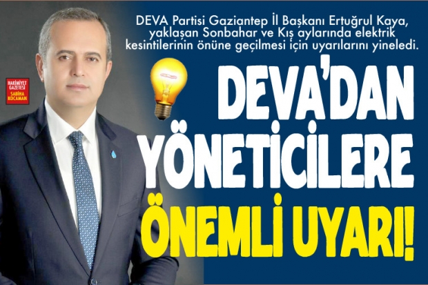 DEVA Partisi Gaziantep İl Başkanı Ertuğrul Kaya, geçtiğimiz yıl Sonbahar ve Kış aylarında sıkça yaşanan elektrik kesintileriyle ilgili çözüm önerilerinde bulundu. Gaziantep'te yaşanan elektrik kesintilerine ilişkin yerel yöneticilerin dağıtım şirketi yetkililerine yönelik ikazda bulunma yönteminin sorunu çözmeyeceğini ifade eden Kaya somut öneriler sundu.