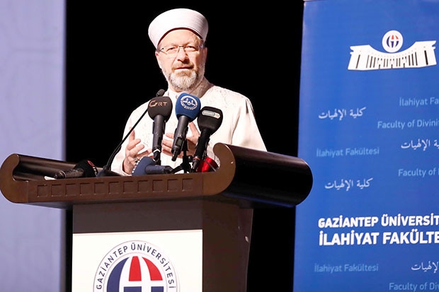 Gaziantep Üniversitesi İlahiyat Fakültesi tarafından Mavera Kongre ve Sanat Merkezi’nde düzenlenen ve 11 rektör ile 80’e yakın ilahiyat ve İslami ilimler fakültesi dekanının katılımıyla gerçekleşen 26. İlahiyat ve İslami İlimler Fakülteleri Dekanlar Toplantısı’nda yaptığı konuşmada, insanlığın ufkunu İslam’ın ilkeleriyle aydınlatma sorumluluğu taşıyanların İslam’ın doğru anlaşılması, doğru anlatılması ve yaşanması konusunda daha fazla sorumluluk sahibi olduğuna vurgu yapan Diyanet İşleri Başkanı Prof. Dr. Ali Erbaş, üç boyutlu olarak değerlendirilebilecek bu sorumluluğun birincisinin İslam’ın doğru anlaşılması konusunda sahih bilginin topluma ulaştırılması olduğunu belirterek şunları söyledi: “Bugün, İslam toplumlarında yaşanan terör, tefrika, etnik ve mezhebi farklılıkların soruna dönüşmesi gibi meselelerde, dinî kavramların tahrif ve istismar edilmesinin ve yanlış din algısının da etkili olduğu bir gerçektir. Dinin bilgisizliğe ya da sağlam temellere dayanmayan yaklaşımlara terkedilmesinin ağır faturasını ve doğru şekilde karşılanmayan her ihtiyacın nasıl istismar edildiğini, bugün daha yakından görmekteyiz. Nitekim FETÖ, DEAŞ gibi terör örgütleri de bunun açık göstergesidir. İfade ettiğimiz üç boyutun ikincisi; İslam’ın hikmetle, güzel sözle, en uygun yöntemle anlatılmasıdır. Merhametle müjdeleyen, hakikatle uyaran, ikna edici bir metotla açıklayan bir yaklaşımla sevdirerek ve nefret ettirmeden İslam’ı anlatmak tebliğin en önemli vasfıdır. Sosyal gerçeklikleri ve öncelikleri dikkate almayan, kaba, sert ve dışlayıcı bir üslup nebevi metoda da iletişimin ilkelerine de aykırıdır. Üçüncüsü ise İslam’ın yaşanan bir hayata ve ahlaka dönüştürülmesidir. Biliyoruz ki İslam bir hayat dinidir. Kur’an-ı Kerim bir hayat kitabıdır. Bütün peygamberler tevhit inancının yerleşmesi, adaletin tesisi ve güzel ahlakın yaşanması için mücadele etmişlerdir. Bugün her Müslüman bu ideal için gayret etmekle mükelleftir. Her üç boyut ile yani doğru dinî bilginin üretilmesi, en güzel yöntemle topluma sunulması ve nebevi bir örneklikle hayata rehberlik edilmesi konusunda en büyük ve temel görev elbette hepimizindir.”