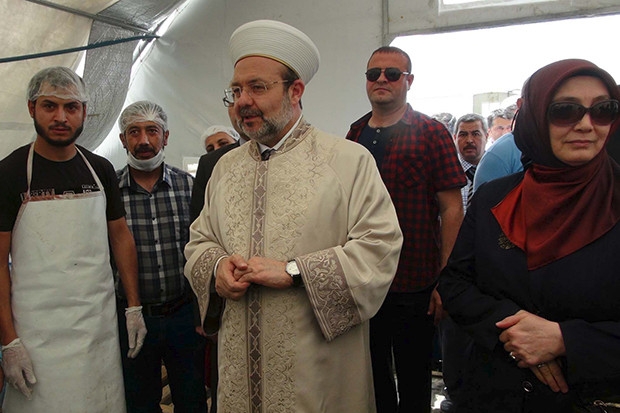 Diyanet İşleri Başkanlığı olarak 'Şimdi yaraları sarma zamanı' adlı kampanya başlattıklarını da hatırlatan Mehmet Görmez, "Kampanya ile Diyanet vakfımız bu bölgedeki çadır kentlerde ve sınır ötesinde zor durumda olan kardeşlerimize her gün sıcak yemek götürüyor. Kim ne yaparsa yapsın, biz millet olarak insanlıkta ve insanlığın vicdanında kalmaya ısrar etmeye devam edeceğiz" diye konuştu.