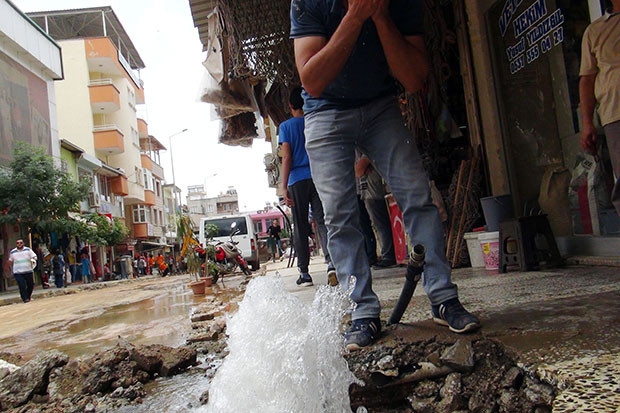 İslahiye’de doğalgaz çalışması esnasında su borusu patladı. Tonlarca su boşa aktı.