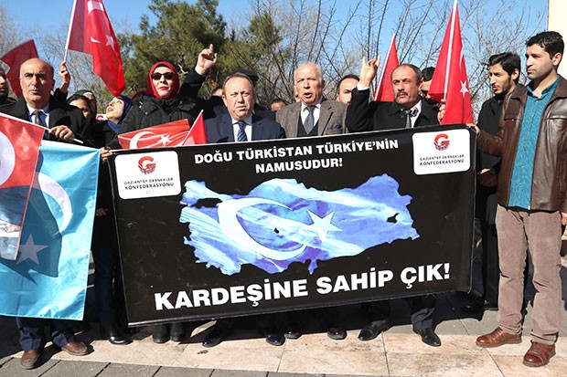 Ellerinde pankart taşıyan gurup Doğu Türkistan'da yapılan zulme tepki göstererek sloganlar attı. Gaziantep Dernekler Konfederasyonu Bölge Başkanı Mehmet Ali Kuş'un yaptığı basın açıklamasında, Türk soyundan olan Doğu Türkistan vatandaşlarının yalnız bırakıldıklarını ve bu olaylara karşı din kardeşleri olan Müslüman ülkelerin sessiz kaldığını belirterek, herkesin zulme karşı tepki göstermeye çağırdı.