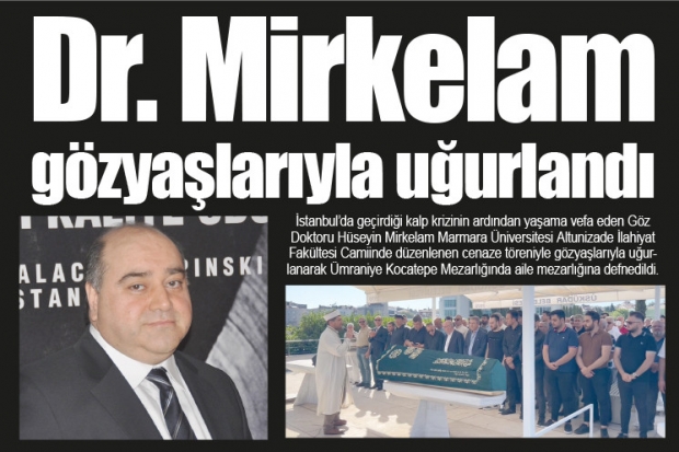 İstanbul’da geçirdiği kalp krizinin ardından yaşama vefa eden Göz Doktoru Hüseyin Mirkelam Marmara Üniversitesi Altunizade İlahiyat Fakültesi Camiinde düzenlenen cenaze töreniyle gözyaşlarıyla uğurlanarak Ümraniye Kocatepe Mezarlığında aile mezarlığına defnedildi.