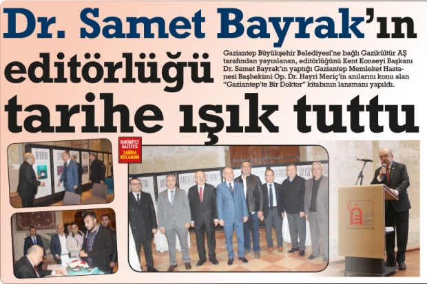 Gaziantep Büyükşehir Belediyesi’ne bağlı Gazikültür AŞ tarafından yayınlanan, editörlüğünü Kent Konseyi Başkanı Dr. Samet Bayrak’ın yaptığı Gaziantep Memleket Hastanesi Başhekimi Op. Dr. Hayri Meriç’in anılarını konu alan “Gaziantep’te Bir Doktor” kitabının lansmanı yapıldı.