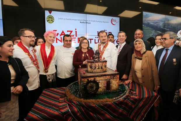Gaziantep Üniversitesi Kültür ve Kongre Merkezi'ndeki resepsiyonun ardından, Büyükşehir Belediyesi, Gaziantep Ticaret Odası (GTO) ve Gaziantep'i Geliştirme Vakfı (GAGEV) tarafından düzenlenen plaket törenine geçildi. Törende konuşan Gaziantep Büyükşehir Belediye Başkanı Fatma Şahin,94 yıl önce bugün Antep'te büyük bir destan yazıldığını ifade ederek, gösterilen kahramanlığın başka destanlara benzemediğin, destanın büyük bir inanç, aşk ve kararlılıkla yazıldığını söyledi. Şahin, "Çünkü hasta adam dedikleri, hesaba göre çok kolay olan, bugün yaşananlara benzer şeylerin yaşandığı bu topraklar birilerinin emellerine ulaşacağı topraklar olarak görülüyordu. Ama bilemedikleri ve hesaplayamadıkları şey, özgürlük, hür olmak Gaziantepli'nin kanında vardı. Ekmek, su, toprak ve hava kadar önemli olan özgürlük için büyük bir mücadele verildi. O yüzden herkes bir araya geldi. Kadınıyla erkeğiyle, yaşlısıyla genciyle bu toprakların geçilemeyeceğini, Mustafa Kemal Atatürk'ün 'ya istiklal ya ölüm' dediği kararlılığı önce bu topraklar gösterdi" dedi.