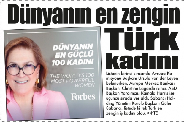 Sabancı Holding Yönetim Kurulu Başkanı Güler Sabancı, Forbes Dergisi'nin geleneksel olarak her yıl belirlediği "Dünyanın En Güçlü 100 Kadını" listesine bu yıl Türkiye’den girmeyi başaran tek Türk iş kadını oldu. Dünyanın en prestijli iş dünyası dergilerinden Forbes tarafından hazırlanan "Dünyanın En Güçlü 100 Kadını" listesinde yer almayı başaran tek Türk iş kadını olan Sabancı, listede 81. sırada yer aldı. Listenin birinci sırasında Avrupa Komisyonu Başkanı Ursula von der Leyen bulunurken, Avrupa Merkez Bankası Başkanı Christine Lagarde ikinci, ABD Başkan Yardımcısı Kamala Harris ise üçüncü sırada yer aldı.