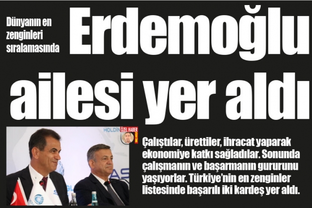 ABD’nin önemli ekonomi dergilerinden biri olan ve dünya ekonomisinin nabzını tutan FORBES Dergisi, dünyanın ve Türkiye’nin en zengin isimlerini açıkladı. Forbes in 2022 yılı nisan ayı yayının da İbrahim erdemoğlu 1.8 milyar dolar serveti ile dünya genelimde 1645. Sırada yer alırken Ali erdemoğlu 1.5 milyar dolar serveti ile 1929. Sırada yer almaktadır. Ülke sıralamasında ise sayın İbrahim erdemoğlu 8. Sırada yer alırken sayın Ali erdemoğlu 14. Sırada yer almaktadır.