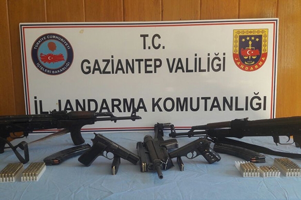 Gaziantep'te jandarmada durdurulan ticari araçtan 2 adet kaleşnikof ile 2 adet tabanca, dipçik ve silahlara ait şarjör ve fişekler ele geçirildi.