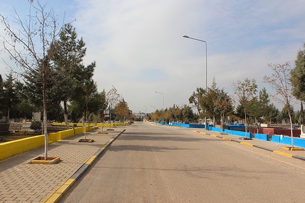 Gaziantep Asri Mezarlık’ta çevre düzenleme çalışmaları sürüyor. Hanifi Şireci Caminin ibadete açılmasıyla birlikte farklı bir çehre kavuşan Asri Mezarlıkta şimdi ise cadde ve sokak duvarları boyandı. Boyama çalışmalarının sürdürüldüğü Asri Mezarlık güvenlik önlemleriyle de dikkat çekiyor.