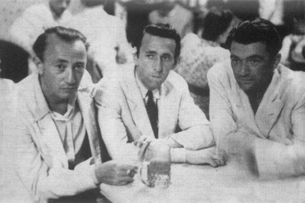 - 3. fotoğraf: Soldan sağa; Orhan Veli, Oktay Rifat, Melih Cevdet ve arkadaşları Şinasi Baray.