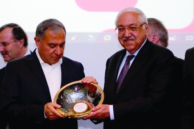 Adana Hacı Sabancı OSB’de yapılan toplantının ardından OSBÜK Başkanı Nakıboğlu’na plaket taktim edildi.