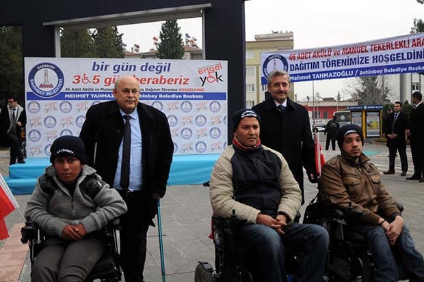 GAZİANTEP'te, Şahinbey Belediyesi tarafından Engelliler Haftası dolayısıyla 46 engelliye tekerlekli sandalye hediye edildi.