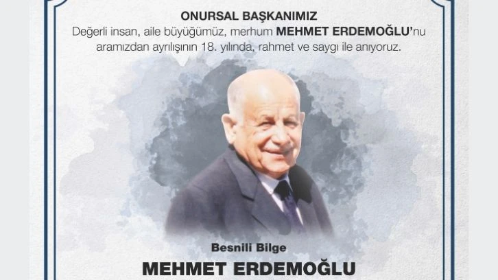 Genel ERDEMOĞLU AİLESİ Değerli insan, aile büyüğümüz, merhum MEHMET ERDEMOĞLU’nu aramızdan ayrılışının 18. yılında, rahmet ve saygı ile anıyoruz. 16-12-2024 08:19