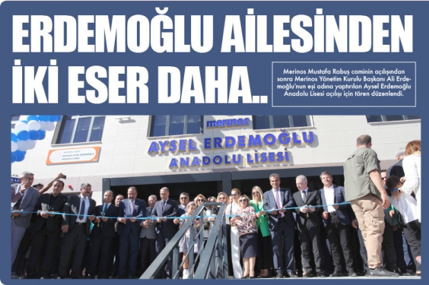 Merinos Mustafa Rabuş caminin açılışından sonra Merinos Yönetim Kurulu Başkanı Ali Erdemoğlu’nun eşi adına yaptırılan Aysel Erdemoğlu Anadolu Lisesi açılışı için tören düzenlendi. Aysel Erdemoğlu Anadolu Lisesinin açılışına, Gaziantep Valisi Davut Gül, Adıyaman Valisi Mahmut Çuhadar, Gaziantep ve Adıyaman Milletvekilleri, Belediye başkanları, Erdemoğlu Holding Yönetim kurulu Başkanı İbrahim Erdemoğlu, Merinos Yönetim Kurulu Başkanı Ali Erdemoğlu, Quick Sigorta Yönetim Kurulu Başkanı Mahmut Erdemoğlu, adına okul yapılan Aysel Erdemoğlu, Erdemoğlu ailesi üyeleri ve vatandaşlar katıldılar.