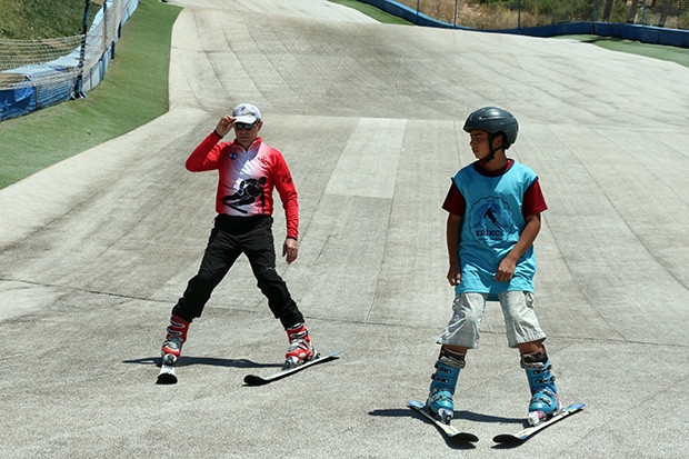 Kayak Antrenörü Ali Özenç, 45 derecede kayak yaptıklarını belirterek, "Bu coğrafya ve özellikle Gaziantep sıcak bir bölgedir. Kayak denilince akıllara soğuk bir coğrafya geliyor. Ama buradaki tesiste kayak sporunda bir alt yapı oluşturmak için çalışmalar başlattık. Bu yıl itibari ile Batman Belediyesi ile bir proje yaptık. Biz de onlarla birlikte haftalık 6 günlük programlarla bu projeyi yürütüyoruz. 50 çocuk geliyor ve bu programda 12-14 saat arası bir kayak eğitimi alıyorlar. Çocuklar kayağı çok sevdiler çok memnun kaldılar. Zemin, kayma yönü belli olmayan sentetik bir yapıya sahip, plastik bir çimdir. Bu zemin su ile kayganlaştırılıyor. Şu anda Gaziantep'te 44-45 derece bir sıcaklık var. Tabi insanlar merak ediyor, bazıları burayı yapay kar diye nitelendiriyor. Bu öyle bir şey değil, 45 derece sıcaklıkta kar durması mümkün değildir. Buraya geldiklerinde malzemeye bakınca ilginç buluyorlar. Vatandaşlar Gaziantep’in sıcağından kendilerini buraya serin bir yere atabilirler" dedi.
