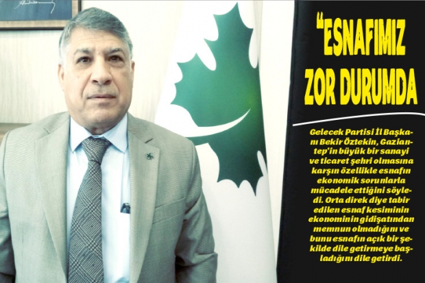 Gelecek Partisi İl Başkanı Bekir Öztekin, Gaziantep’in büyük bir sanayi ve ticaret şehri olmasına karşın özellikle esnafın ekonomik sorunlarla mücadele ettiğini söyledi. Orta direk diye tabir edilen esnaf kesiminin ekonominin gidişatından memnun olmadığını ve bunu esnafın açık bir şekilde dile getirmeye başladığını dile getirdi.