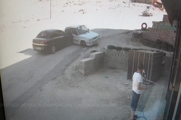 Gaziantep’te iki otomobilin çarpışma anı güvenlik kamerasına yansırken, o esnada dükkanın camını temizleyen bir kişi otomobilin altında kalmaktan kıl payı kurtuldu. O anlar ise bir iş yerinin güvenlik kamerasına saniye saniye yansıdı. Kaza, Güneş Mahallesi'nde meydana geldi. Opel marka 27AFS311 plakalı araç seyir halindeyken sürücünün direksiyon hakimiyetini kaybetmesi sonucu kontrolden çıkarak, karşı yönden gelen Renault marka araçla çarpıştı. Çarpışmanın etkisiyle her iki araçta bulunan 3 kişi yaralanırken, o esnada dükkanın camını temizleyen Fatih Özkarcı aracın altında kalmaktan dükkanın önündeki briketler sayesinde kurtuldu. O anlar ise bir iş yerinin güvenlik kamerasına saniye saniye yansıdı. Aracın altında kalmaktan kıl payı kurtuldu Yokuşta çarpışan iki otomobil hızla dükkanının camını temizleyen Fatih Özkarcı’ya doğru gelirken, 3 metre önündeki küçük duvarın briketlerine çarpan otomobil son anda durdu. Kazayı gören Özkarcı hemen yaralılara yardım etmek için otomobillere koştu. “Çimento dökülünce araçlar kaydı” Çimento aracından yola çimento döküldüğünü ve bu nedenle de yolun kayganlaştığını ifade eden Özkarcı, “Bir gün önce çimento mikser aracı bu yoldan geçerken yola çimento döküldü. Yolun kaygan olduğunu görünce hemen durumu yetkililere aktardık. Maalesef bugün de üzücü bir olay oldu. Bir araç aşağıya inerken kontrolünü kaybetti ve karşıdan gelen otomobile çarptı” dedi. “Briketler olmasaydı araç üstüme geliyordu” Üç metre mesafedeki briketler sayesinde aracın altında kalmaktan kurtulduğunu belirten Özkarcı, “Ben de 3 metreyle ölümden kurtuldum. Ben o esnada dükkanın dış temizliği ile uğraşıyordum. Arkamı döndüğümde bir ses duydum. Orada gördüm, eğer orada o briketler olmasaydı araç direkt üstüme geliyordu. Allaha şükür bundan ucuz kurtulduk. Tek tesellimiz can kaybının olmaması ama yarın ne olacak bilemiyoruz. Bu konuda yetkililerin dikkatli olmasını istiyoruz. 3 metre önümde oldu. Eğer o briketler olmasaydı ben şuanda farklı bir durumda olabilirdim” diye konuştu.