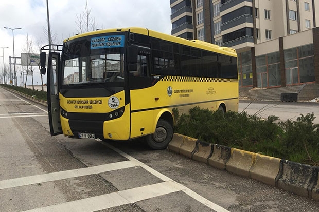 Edinilen bilgiye göre, Gaziantep’te Karagöz-Yeşilevler hattında yolcu taşıyan M.K. idaresindeki 27 M 0564 plakalı halk otobüsünün sürücüsü aniden bayıldı. Yokuş yukarı seyir halindeyken kontrolden çıkan otobüs karşı şeride doğru yöneldi. Otobüs refüje çarparak durabildi. Yolun iki şeridi arasında bulunan refüj büyük bir faciayı engelledi. Kaza esnasında otobüste bir yolcu bulunduğu belirtilirken, sürücü ve yolcunun burnu kanamadan kazadan kurtulduğu öğrenildi. Kaza sonrası ayılan sürücü ve otobüsteki yolcunun bir süre kazanın şokunu yaşadığı öğrenildi.