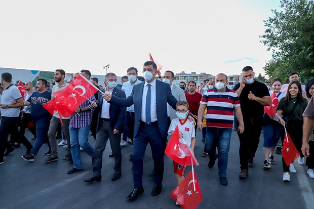 Programda konuşan Şehitkamil Belediye Başkanı Rıdvan Fadıloğlu, “Bundan 5 yıl önce bu meydanda hep birlikte bir harekete dur dedik. Dünya var oldu olalı, iyiler de var kötüler de var. Allah’a şükür Türkiye’nin her noktasında olduğu gibi Gaziantep’te de vatandaşlarımız, milletimiz iyilerden yana tavır koydu. Çok şükür, bu meydanda, bu davaya inandığımız için iyilerin yanında saf tutarak bugünlere geldik. Atalarımızın dökmüş olduğu kanlarla sulamış oldukları bu topraklarda büyük emekler var. Elden ele devredilen bu topraklarda bizler de gençlerimizle birlikte daha iyi bir geleceğe bundan sonra hep birlikte devam edeceğiz. O karanlık gecenin sabahında güzel bir güneş doğdu. Bu güneşin doğmasında milletin her kademesindeki ferdinin emeği ve inancı vardı. Bu inanç, damarlarındaki dolaşan asil kanda mevcuttu. Gençliğimize ve geleceğimize inanıyorum. İnşallah bundan sonraki süreçte Allah, bize 15 Temmuz gibi bir gün yaşatmasın" diye konuştu.