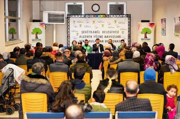 Şehitkamil Belediye Başkanı Rıdvan Fadıloğlu, Alleben 2 Yüzme Havuzu altyapı sporcuları ve velileriyle bir araya geldi. Başkan Fadıloğlu, “Havuzlarımızı açarken tek amacımız; buradan iyi sporcuların yetişmesi ve uluslararası arenalarda İstiklal Marşımızın okutulması ve Türk Bayrağımızın göndere çektirilmesiydi. Bu hedefimize de Allah’a şükür ulaştık” dedi.