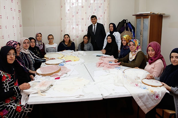 Yapılan çalışmaların memnuniyet verici olduğu dile getiren Şehitkamil Belediye Başkanı Rıdvan Fadıloğlu, “Pir Sultan Aile Merkezinde açılan el beceri kursumuzu ziyaret ettik. Hanım kardeşlerimiz, burada hocalarımızın vermiş olduğu eğitimle geleneksel Antep işini geliştiriyorlar. Tabi Antep işinde yeni desenler oluşturuyorlar, yine tel kırmayla ilgili çalışıyorlar. Tabi burada esas olan hanım kardeşlerimizin vakitlerini değerlendirmesi, el becerilerini geliştirmesidir. Bunun yanı sıra isteyen hanım kardeşlerimiz, çocuklarına çeyizlik yapıyor, isteyen de aile bütçesine katkı sağlamak adına faaliyet gösteriyor. Hocalarımız da kendini geliştiriyor, geliştirdikleri öğrencilerde kendilerini geliştiriyor. Bir müddet sonra onlar da hoca olacak konuma geliyor. Tabi bizim buradaki amacımız; özellikle hem annelerin hem de çocuklarının aynı mekanda olmasını sağlamak. Burada hanım kardeşlerimiz el beceri kurslarını alırken, diğer taraftan da çocuklarımız okul öncesi eğitimler alıyorlar. Anne ve çocuğun aynı ortamda eğitimine katkı vermek adına sosyal tesislerimizi bu şekilde devam ettiriyoruz. Fiziki şartlar yettiği müddetçe bu hizmeti vermeye devam edeceğiz. Ben, hocalarımıza teşekkür ediyorum, hanım kardeşlerimizi de tebrik ediyorum” dedi.