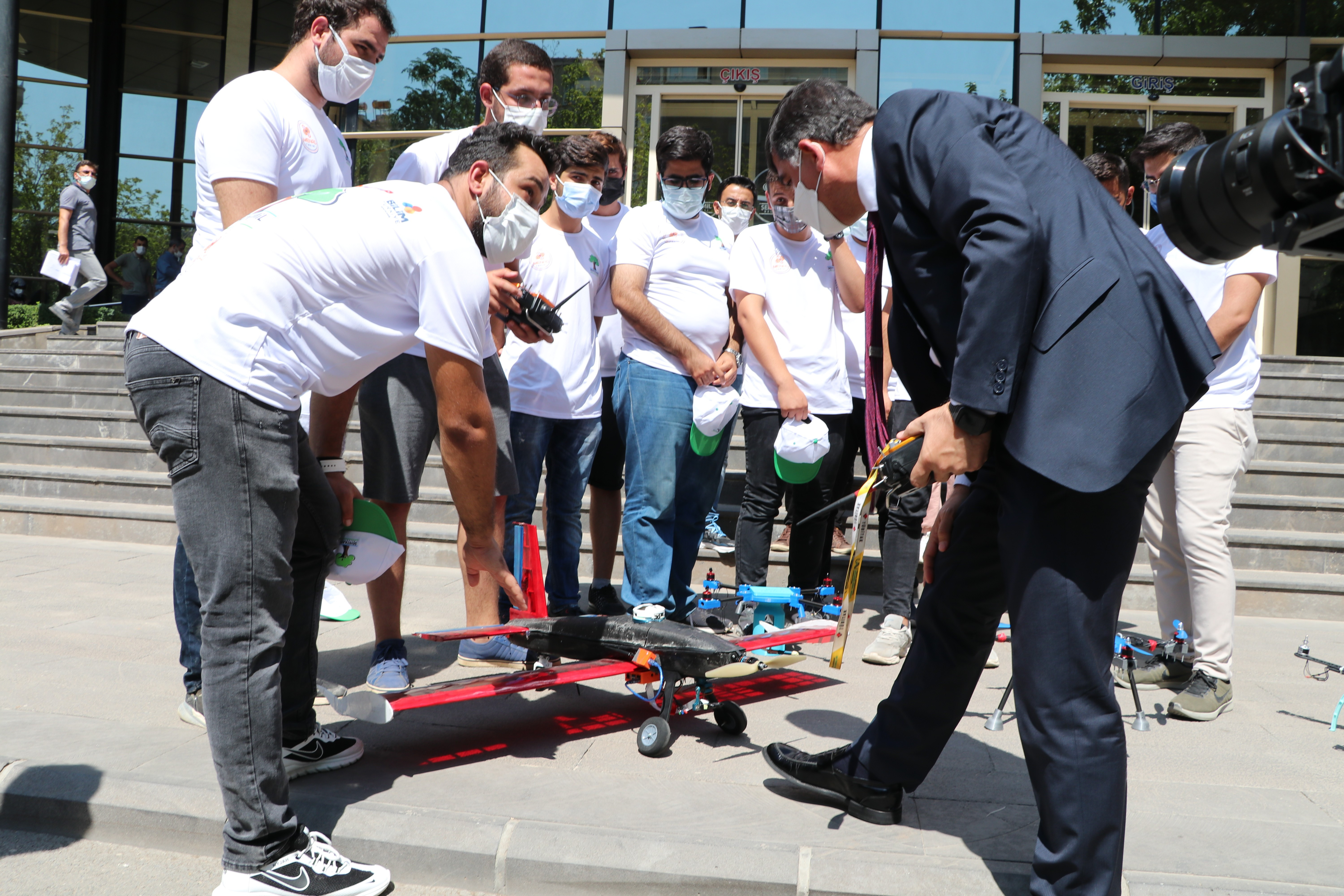Şehitkamil Belediye Başkanı Rıdvan Fadıloğlu, Bilim Şehitkamil’de eğitim gören liseli öğrencilerin oluşturduğu MENAD Takımı ile üniversite öğrencilerinin oluşturduğu ORET Takımı tarafından sabit kanat ve döner kanat kategorilerinde yarıştırılmak için ürettikleri insansız hava araçlarını inceledi.