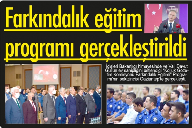 İçişleri Bakanlığı himayesinde ve Vali Davut Gül’ün ev sahipliğini üstlendiği “Kolluk Gözetim Komisyonu Farkındalık Eğitimi” Programı’nın sekizincisi Gaziantep’te gerçekleşti.