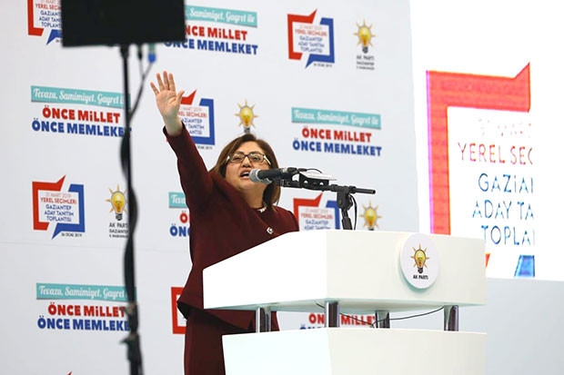 Gaziantep Büyükşehir Belediye Başkan adaylığı daha önce kesinleşen Fatma Şahin, Şahinbey Karataş Kapalı Spor Salonunda Cumhurbaşkanı ve AK Parti Genel Başkanı Recep Tayyip Erdoğan’ın da katıldığı programda yaptığı konuşmada, “ Bu şehir şehirlerden herhangi bir şehir değildir. Her zorlukta bir kolaylık vardır diyen bir şehirdir. Bu şehir korkaklar zafer anıtı dikemez diyenlerin şehridir. Bu şehir İman varsa imkan da vardır diyenlerin şehridir. Helal olsun size. AK Parti Gaziantep, Gaziantep AK Partidir. Beklenen an geliyor, liderimiz, reisimiz Recep Tayyip Erdoğan şu anda salonumuza girmek üzeredir. Bu heyecan, bu destan 31 Martta Gaziantep'te yeni bir destanın yazılacağının habercisidir. Hep birlikte başaracağız, analarımızla başaracağız, gençlerimizle başaracağız, babalarımıza başaracağız, başkanlarımızla başaracağız. Biz bir Gaziantep modeli oluşturduk, dünya bunu konuşuyor. Bu Gaziantep modeli sevgi modelidir, kardeşlik modelidir. Bu Gaziantep modelinde Kürdü ile Türkü ile Arabı ile birlikte Gaziantep’tir. Gaziantep modeli alevisi, sünnisi ile birlikte Gaziantep’tir İşte o yüzden Gaziantep aşkı ile çalışıyoruz, işimiz gücümüz Gaziantep diyoruz. Dibimizde savaş var. Bu şehrin sanayicisi 150 fabrika bitirmiştir. Helal olsun onlara, helal olsun bu şehre taş üstüne taş koyanlara. Türkiye'nin Melen’den sonra en büyük su projesi 2 yılda tamamlanmıştır. Parti AK Parti, yaptıran lider Recep Tayyip Erdoğan'dır. Bugün yeni bir bismillah diyoruz. İşimiz gücümüz Gaziantep dedik. Gaziantep aşkı ile çalışıyoruz dedik. Şimdi diyoruzki ekonomisi ile yükselen yeni bir Gaziantep var, sanayisi ile yükselen yeni bir Gaziantep var, kültürü ile yükselen yeni bir Gaziantep var. Bunların hepsini birlikte başaracağız ama reisi ile lideri ile Recep Tayyip Erdoğan’ı ile yeni bir Gaziantep var. Biz seferden sorumluyuz, sefer bizden, zafer Allah'tandır. Gayretten sorumluyuz, gayret bizden, zafer Allah'tandır. Zafer inananların olacaktır” diye konuştu.