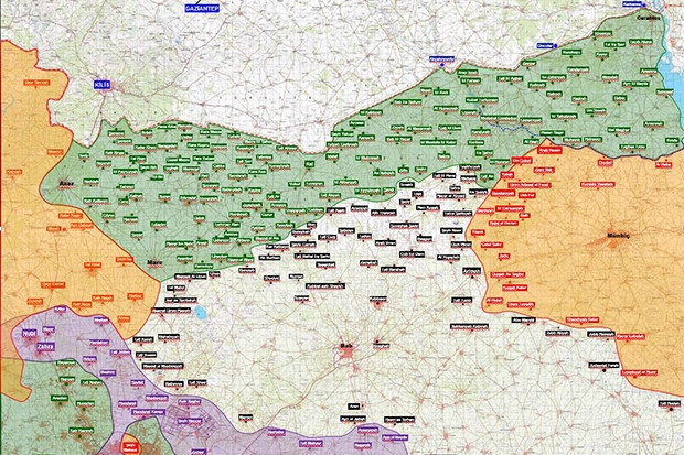 Askeri kaynaklar, ayrıca Fırat Kalkanı harekatında 17 Ekim günü ulaşılan hatları gösteren haritanın son durumunu paylaştı.