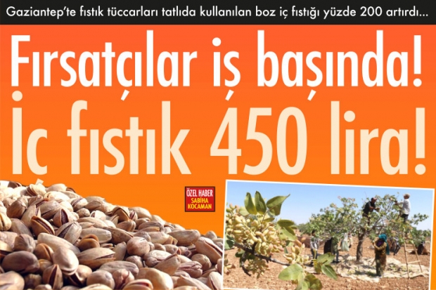Ekonomik krizin yol açtığı zam sağanağı fırsatçılara büyük kazanç kapısına dönüştü. 200 lira olması gereken iç Antep fıstığının toptan fiyatı, bazı stokçu tüccarların uyguladığı zam oyunuyla bir anda 450 liraya tırmandı.