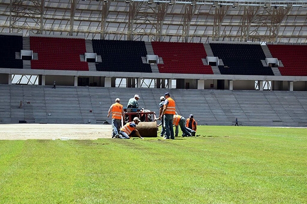 Gaziantepspor'un heyecanla beklediği stadı GAP Arena'da çim serme işlemi başladı.
