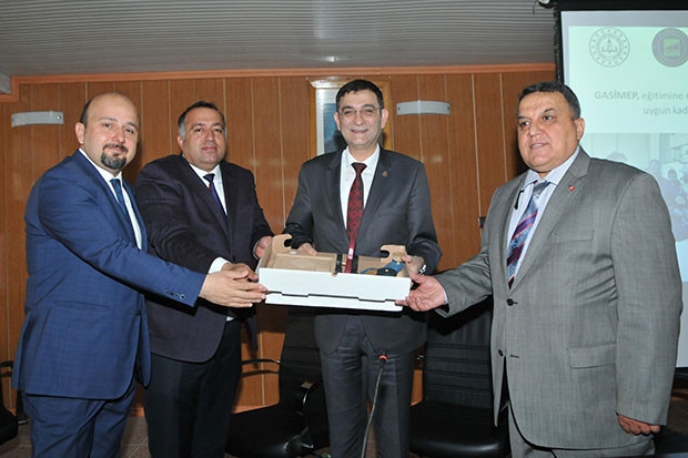2 yıldır yürütülen çalışmanın meyvelerini yavaş yavaş toplamaya başladıklarına vurgu yapan Mehmet Rüştü Uzel Mesleki ve Teknik Anadolu Lisesi Okul Müdürü Hasan Hüseyin Özbey, “Gaziantep Sanayi Odası bu projede lokomotif oldu ve projeyi başlattı. Projeyle meslek liseleri bir ivme kazandı. GSO meslek liselerinin daha iyi yerlere gelmesi noktasında yoğun çalışmalar yürütüyor. Kendilerine çok teşekkür ediyoruz” şeklinde konuştu.